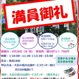 【大島小松川公園】4/29(水・祝)こいのぼりイベント満員御礼のお知らせ