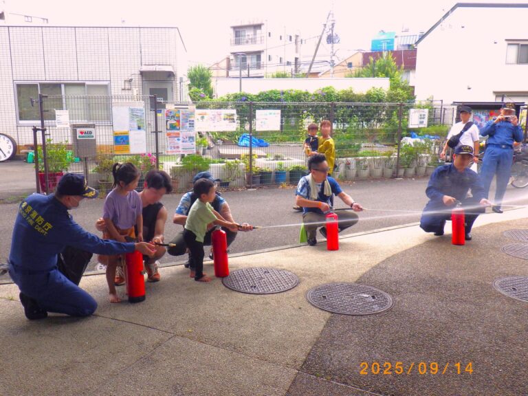 尾久消防署尾竹橋出張所が毎月消火訓練に訪れています。