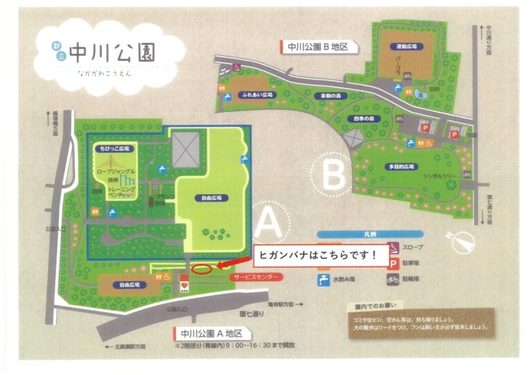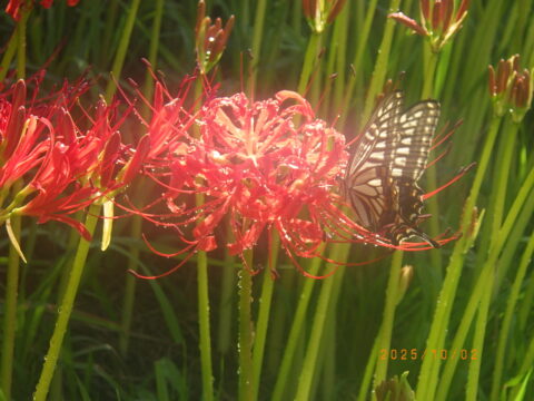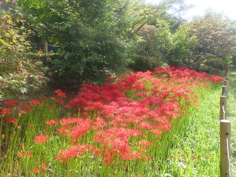 秋の訪れを告げるヒガンバナが、公園A地区サービスセンター裏で、見ごろを迎えています。