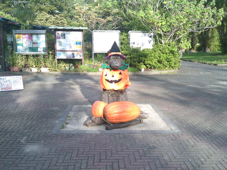 猿江恩賜公園では今年も常陸大宮市の農家の方が大切に育てた、おばけかぼちゃの展示をしております。