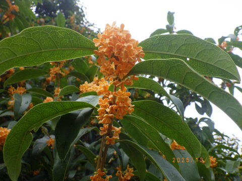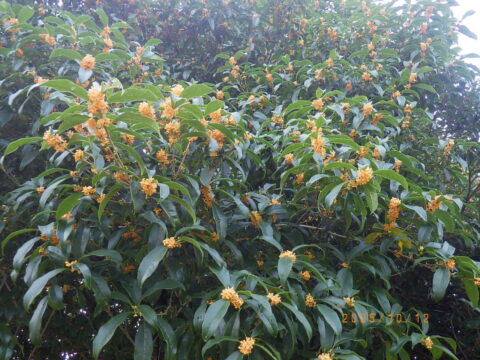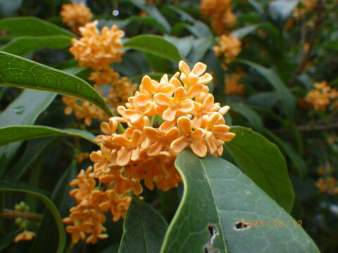 秋の訪れを告げる香り高い花木、キンモクセイが咲き始めました。