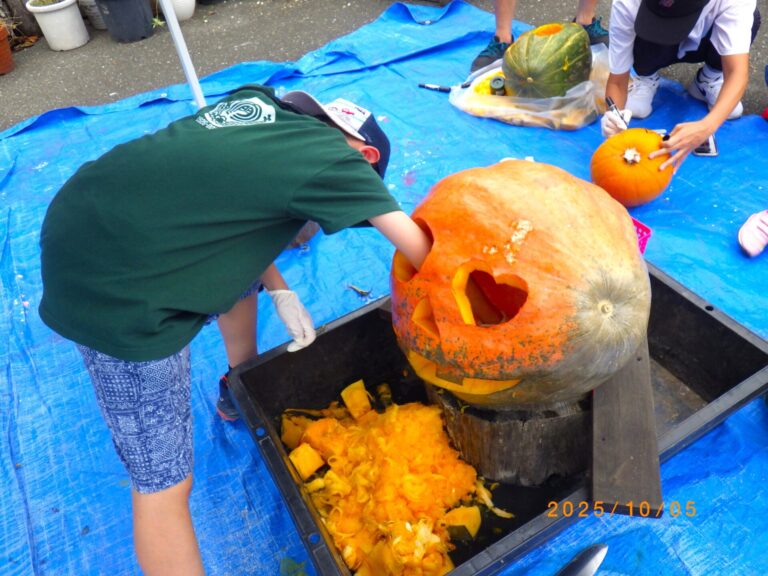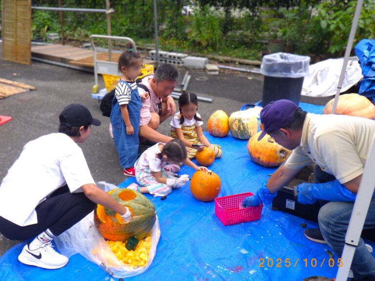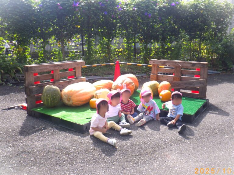 子どもたちの笑顔を思い浮かべながら大事に大きく育ててくれたかぼちゃです。