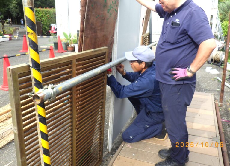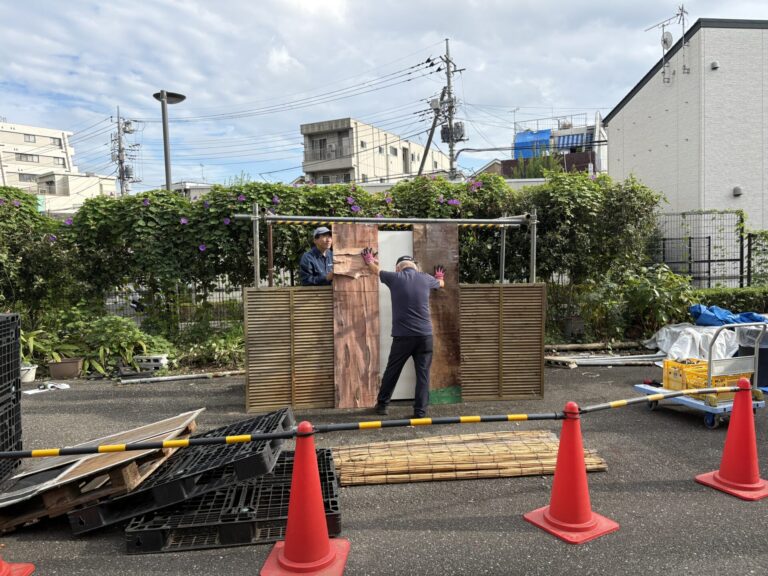 カボチャのくり抜き作業の横では何やら建物を作り始めています。