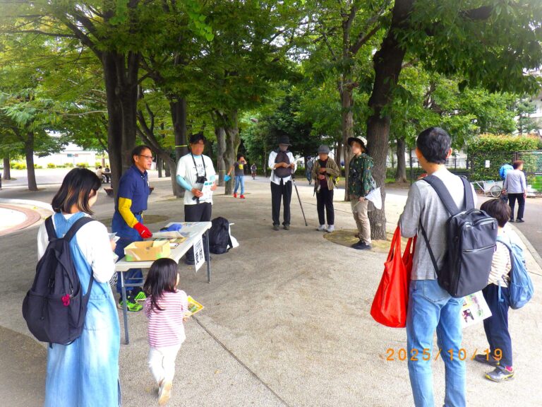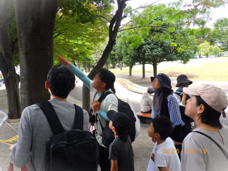 11月は樹名板や植え込みに隠れた各種の昆虫やクモを観察します