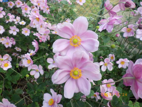 公園A地区、サービスセンターのお庭の「シュウメイギク」が満開を迎えています。