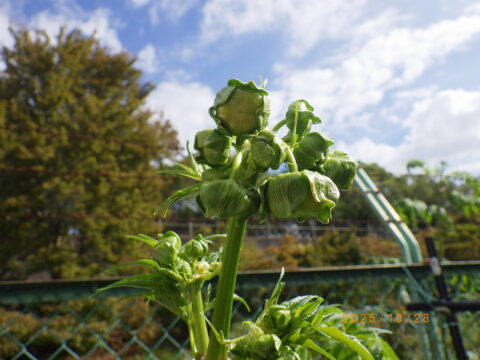 夏の猛暑を何とか乗り切って、現在はすくすくと伸びて、たくさんの蕾を付けています。
