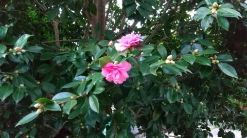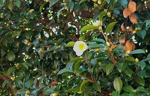 朝倉以外のサザンカについては、今年は夏の暑い時期が長かった分、花芽の生育が不足していて、最近の気温の低下にもかかわらず、十分な開花には至らなかったとのこと。