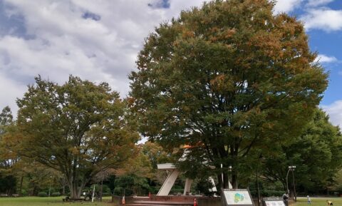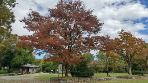 亀戸中央公園の中でも、さまざまな樹々の葉の色が変わり始めた風情を楽しめます。