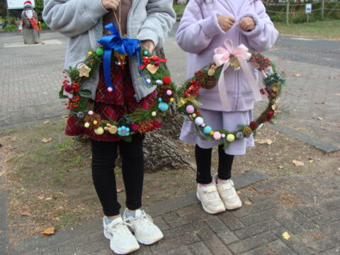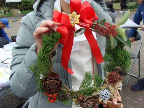 公園由来の材料などを多数用意し、リースやスワッグなどを作成しました。