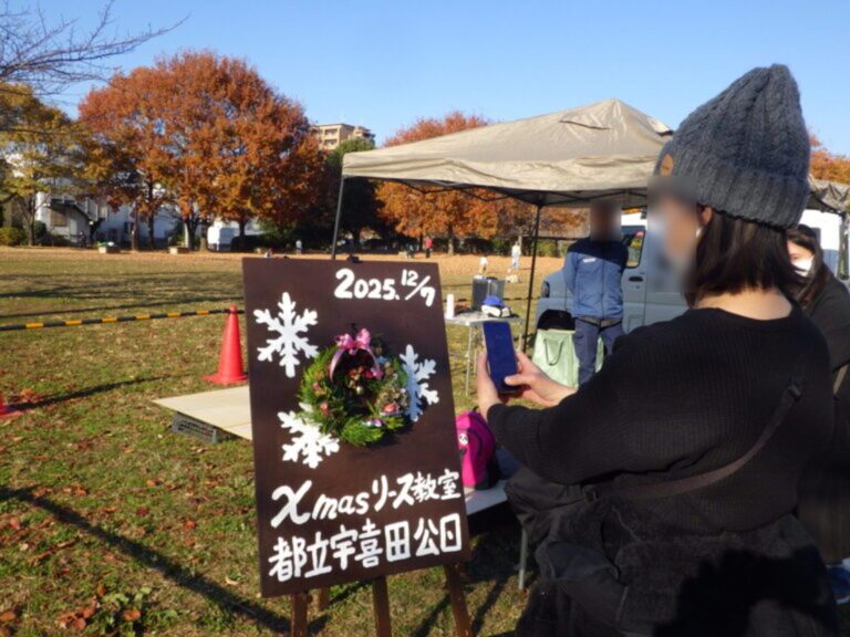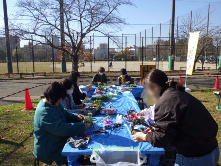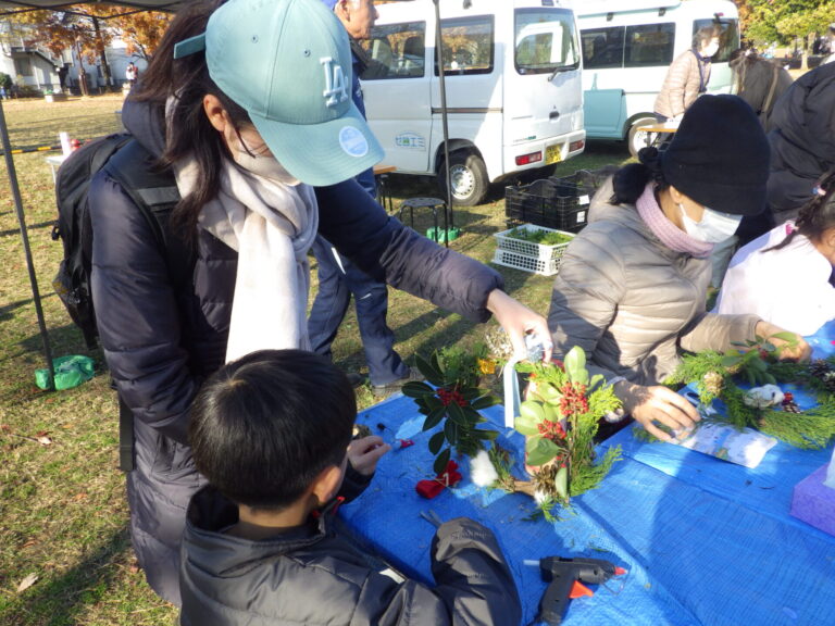 12月7日(日)にイベント「Xmasリース作り教室」をあそびば広場にて開催しました。