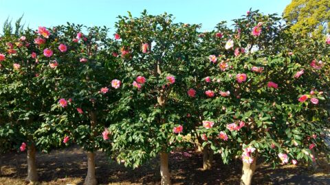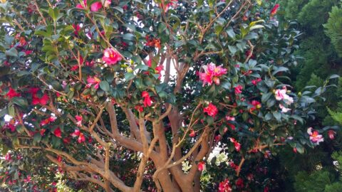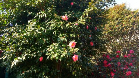 【亀戸中央公園】サザンカだより(4)ハルサザンカ『蜀紅錦』『笑顔』『星飛竜』が咲き始めました!