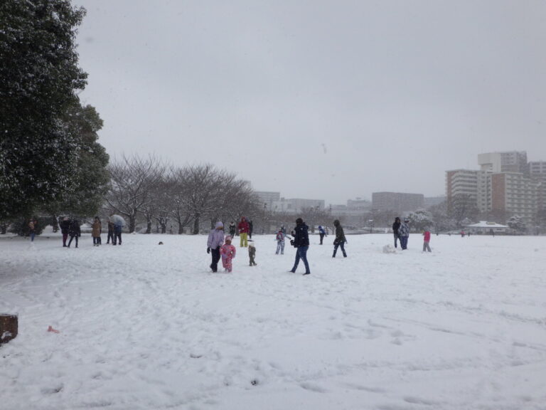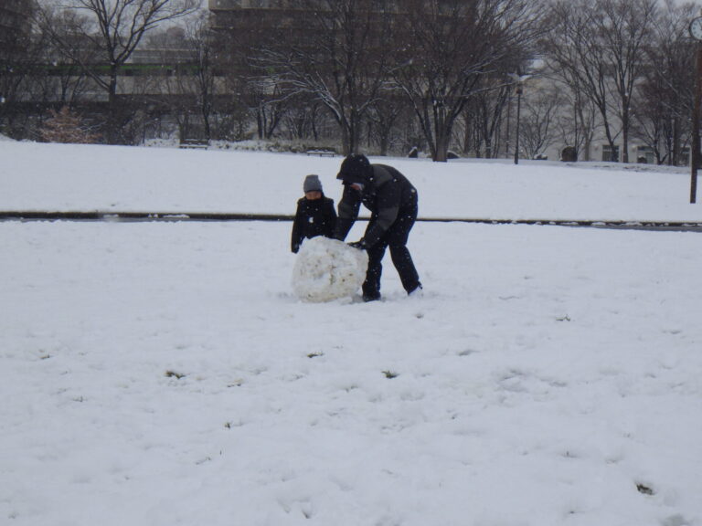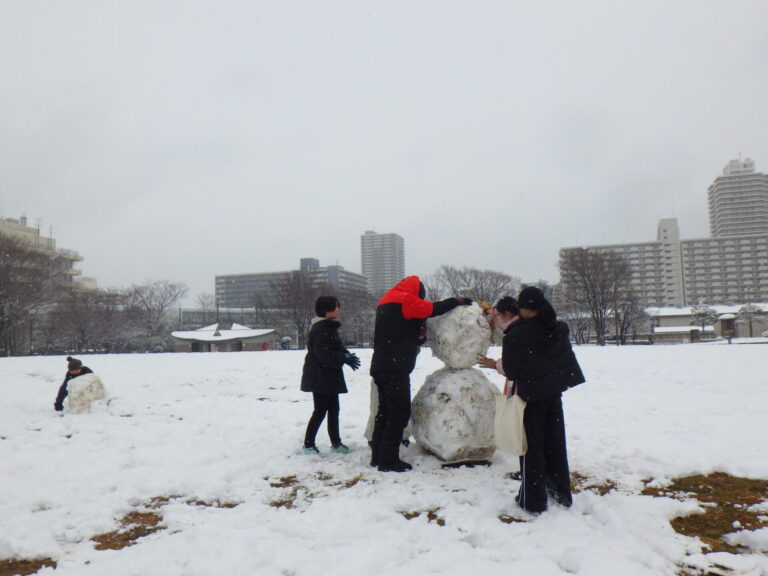 園内では雪ダルマ、雪投げ、撮影を楽しむ方々がいらっしゃいました。