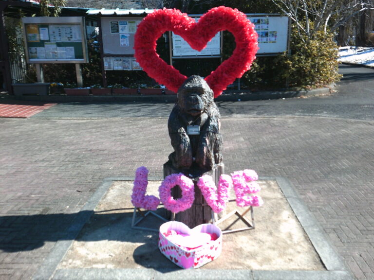 猿江ゴリオ像もバレンタイン仕様となりました。