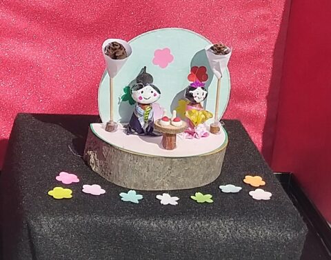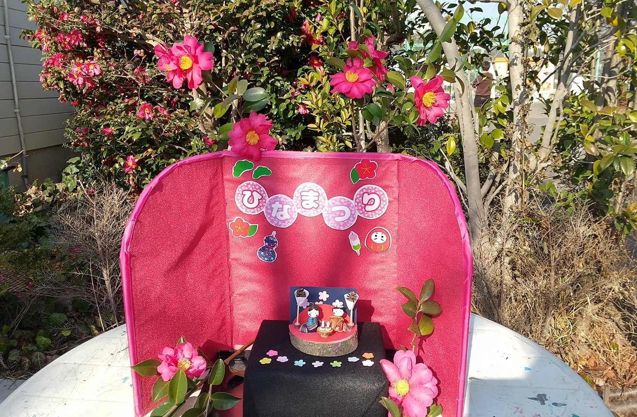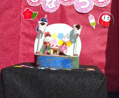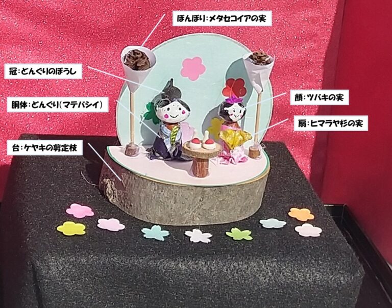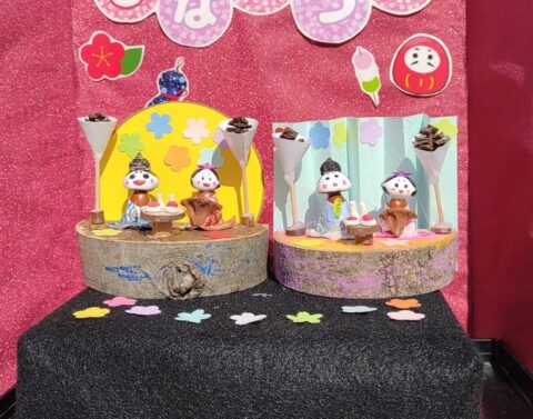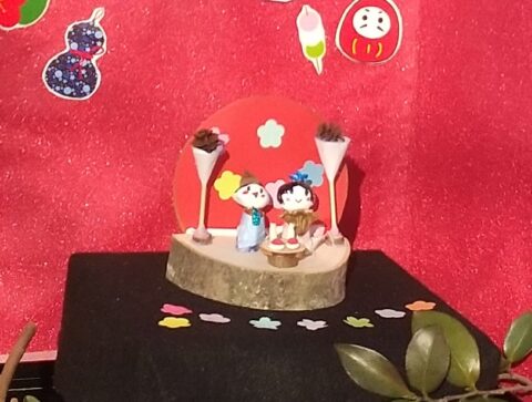 園内で採取されたさまざまな材料を使って、可愛いひな人形を作りました。