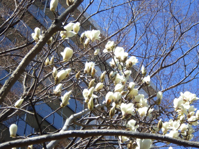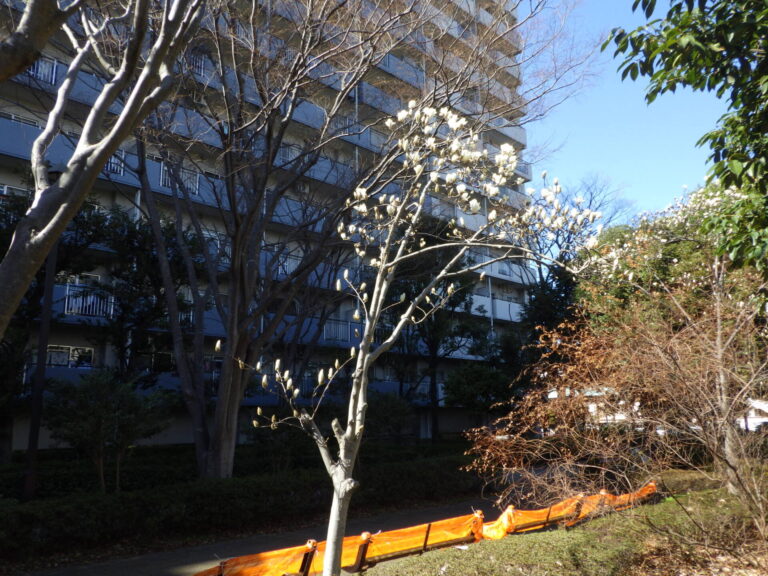 ハクモクレンが当年も先頃、咲き始めました。白の大輪花です。