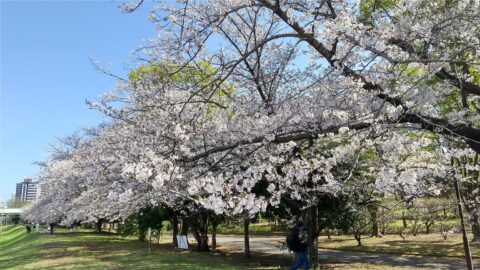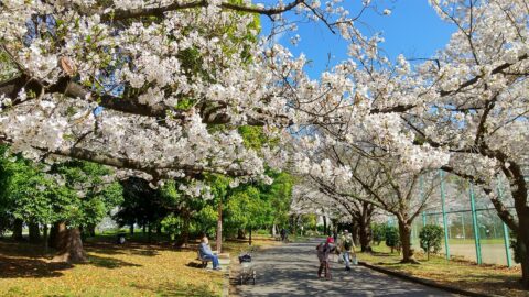 多目的広場の周囲に植えられているソメイヨシノが、残らず満開になっていました。