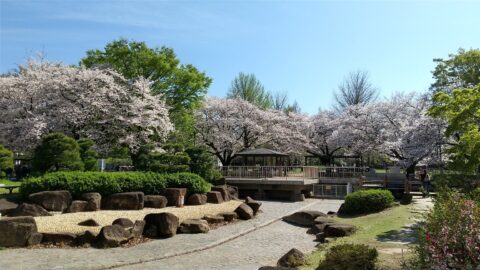 じゃぶじゃぶ池そばやあずまやのまわりも満開です。