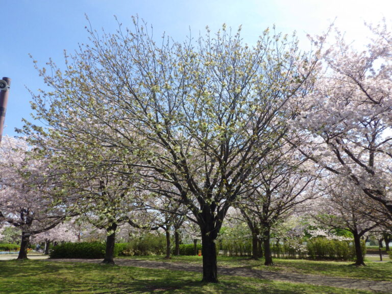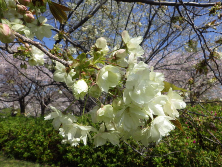 場所は自由の広場の東側です。品種は「ウコン」と「ギョイコウ(御衣黄)」の2種類です。