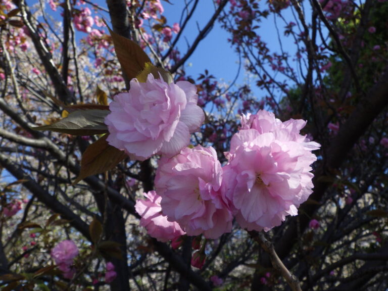 ②八重桜 : 品種名は「関山」と「松月」。 今週末、満開の見込み。