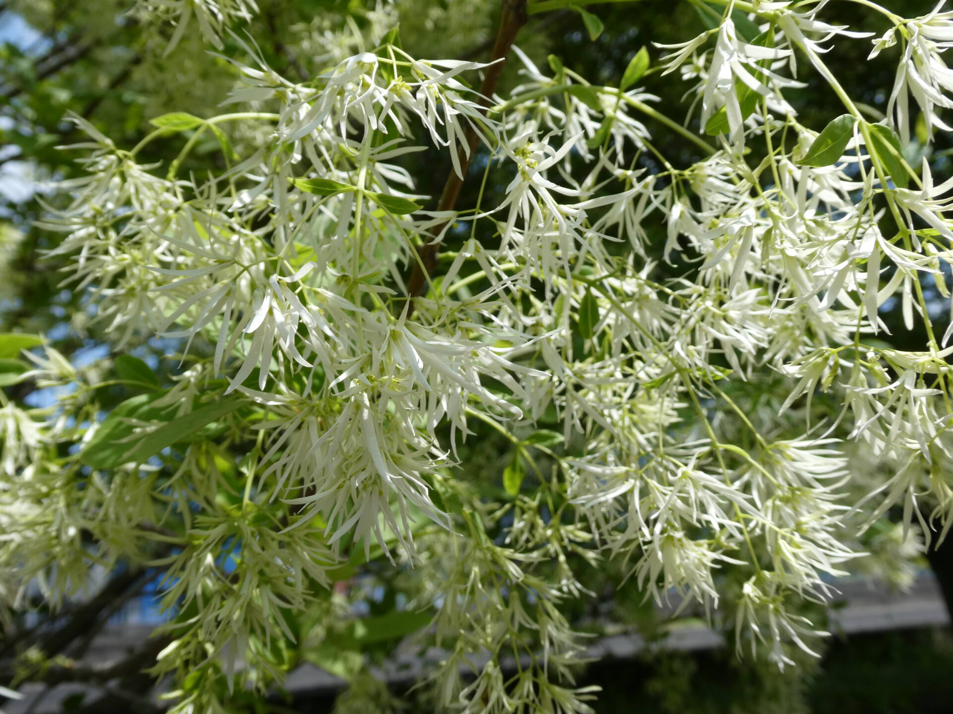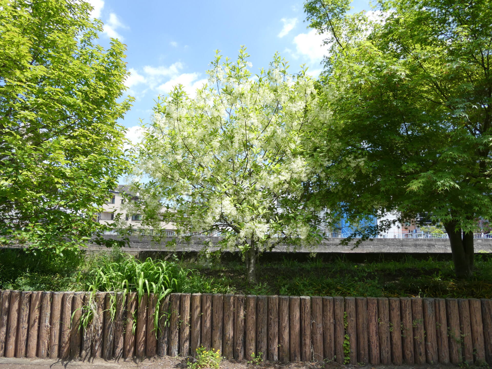 公園北園北東の横十間川沿いにあるヒトツバタゴ(別名ナンジャモンジャ)が見頃を迎えております。