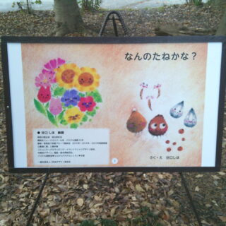 いつも猿江恩賜公園をご利用いただきましてありがとうございます。 今回、森の絵本を展示替えいたしました。 新しい作品のタイトルは「なんのたねかな?」です。 本作も魅力的な内容となっております。 ご来園の際は、園内各所にある絵本をご覧ください。 また、サービスセンターで本作品のミニ絵本製作キットも配布しております。