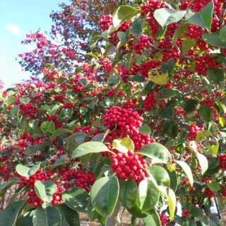 いつも中川公園をご利用いただきありがとうございます。 クロガネモチが鮮やかな赤い実をたわわに実らせています。 木全体が華やかな雰囲気に包まれ見ごろとなっております。 場所は、A地区サービスセンター北東側になります。 お近くにお越しの際には、ぜひお立ち寄りください。 皆様のご来園、心よりお待ちしております。