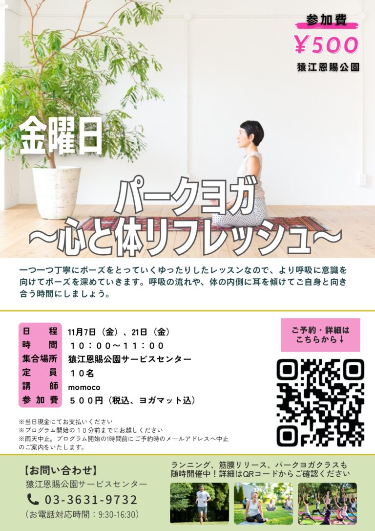 「パークヨガ ~心と体をリフレッシュ~(猿江恩賜公園)」開催のお知らせ
