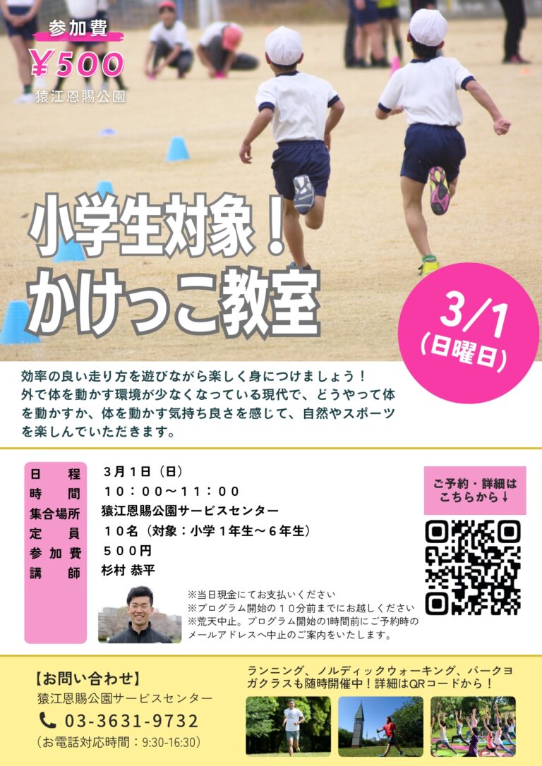 「かけっこ教室【小学生対象】(猿江恩賜公園)」開催のお知らせ