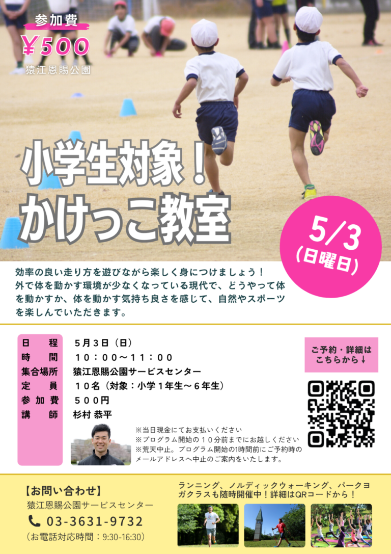 「かけっこ教室【小学生対象】(猿江恩賜公園)」開催のお知らせ