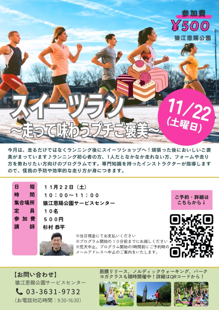 「スイーツラン~走って味わうプチご褒美※現地解散~(猿江恩賜公園)」開催のお知らせ