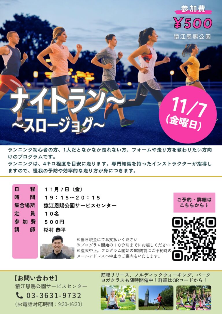 「ナイトラン~スロージョグ~(猿江恩賜公園)」開催のお知らせ