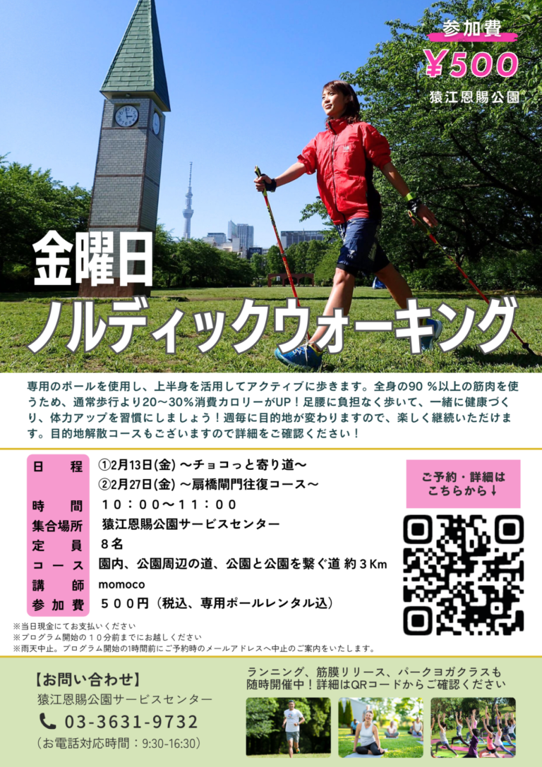 「ノルディックウォーキング〜チョコっと寄り道※現地解散〜 (猿江恩賜公園)」開催のお知らせ