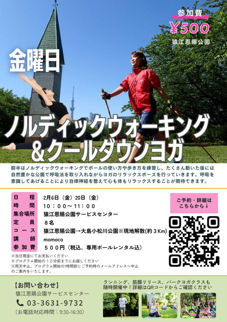 「ノルディックウォーキング&クールダウンヨガ~大島小松川公園方面※現地解散~(猿江恩賜公園)」開催のお知らせ