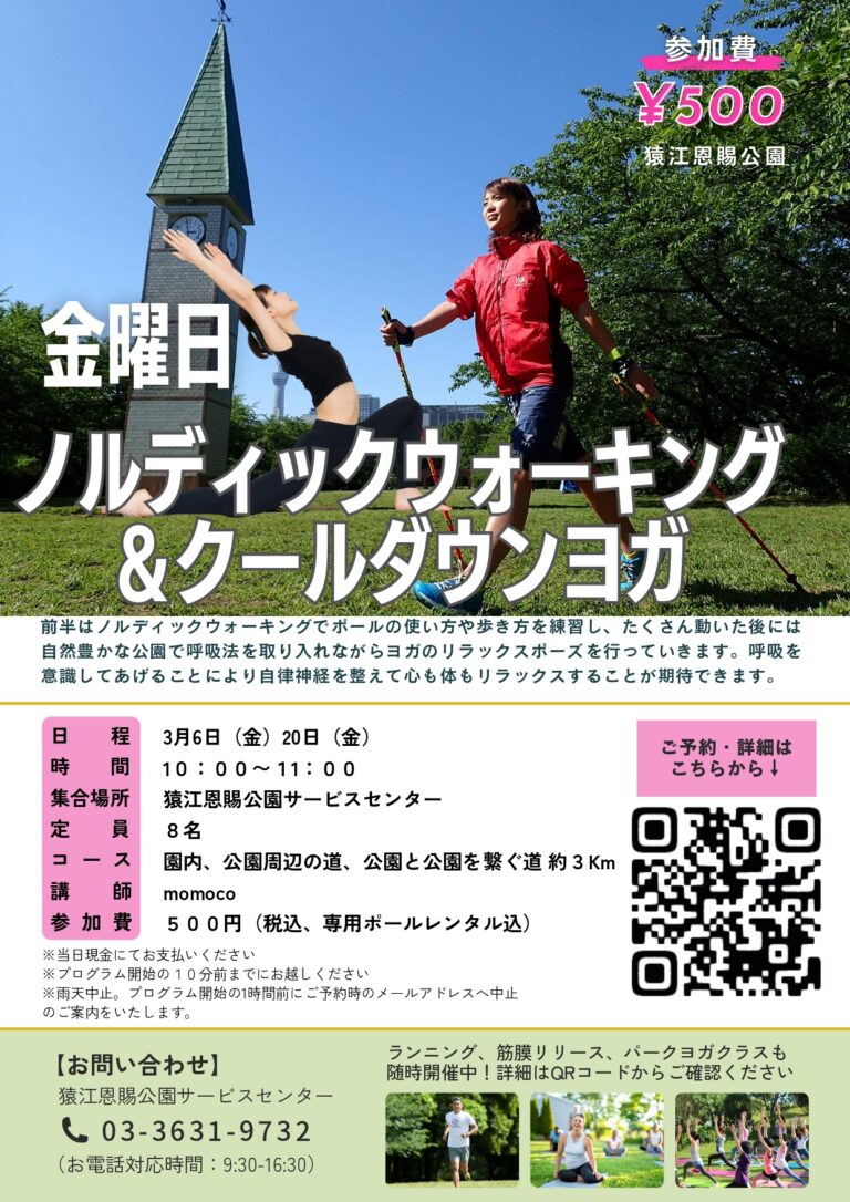 「ノルディックウォーキング&クールダウンヨガ~大島小松川公園方面※現地解散~(猿江恩賜公園)」開催のお知らせ