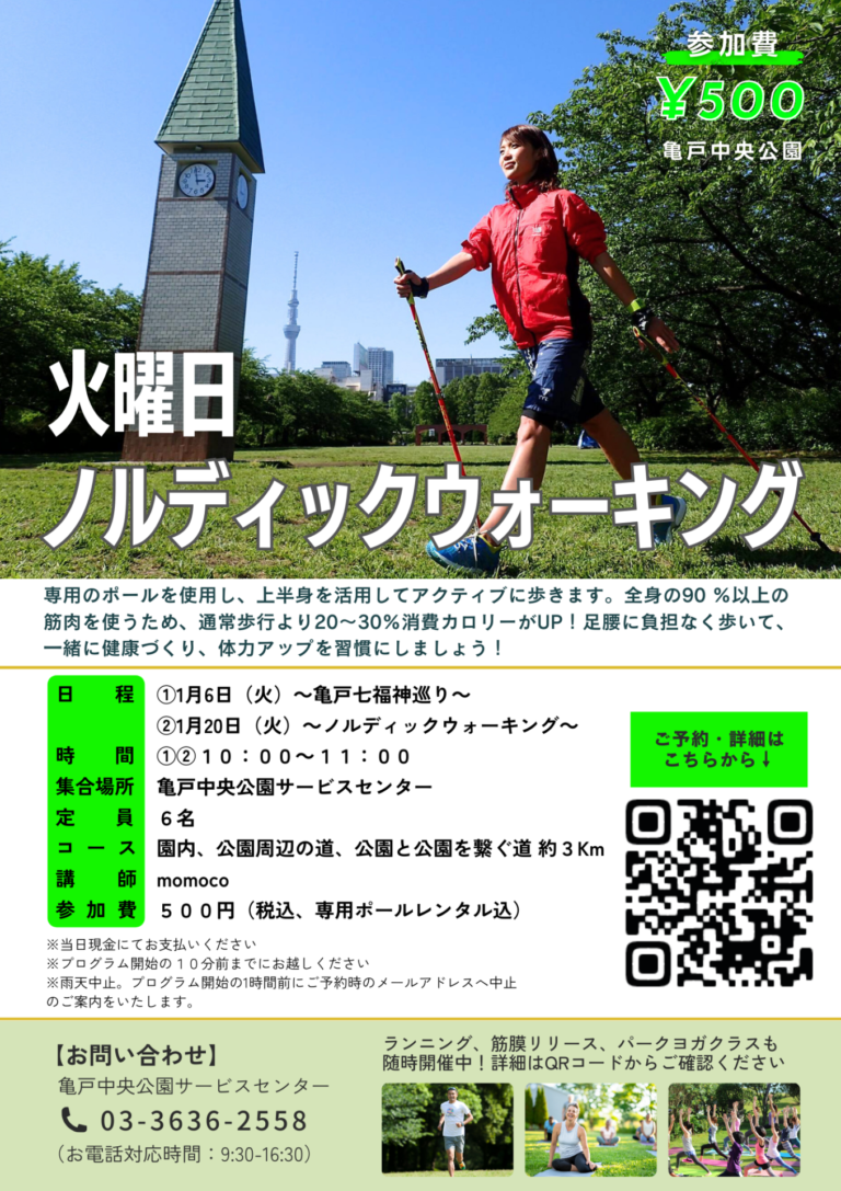 「ノルディックウォーキング~亀戸七福神めぐり※現地解散~ (亀戸中央公園)」開催のお知らせ
