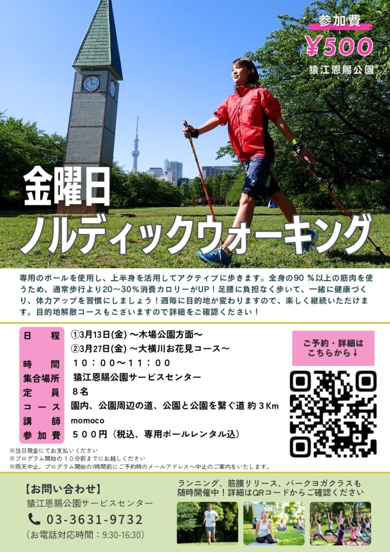 「ノルディックウォーキング~大横川お花見コース~(猿江恩賜公園)」開催のお知らせ