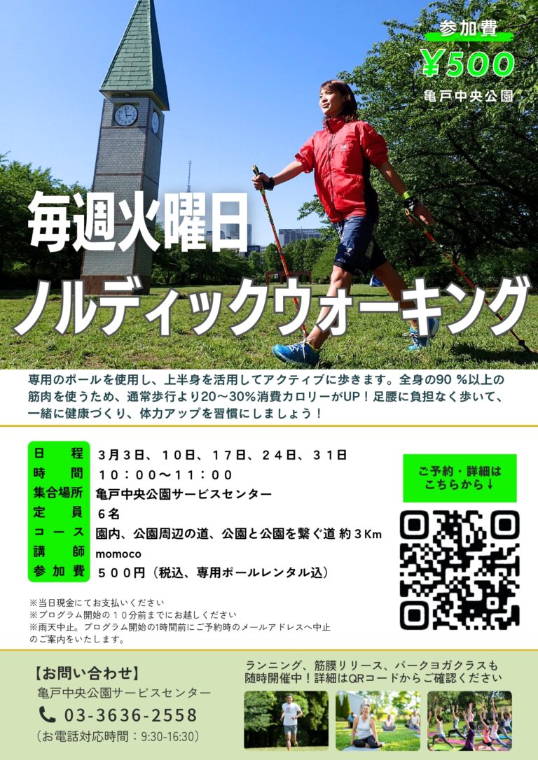 「ノルディックウォーキング~猿江恩賜公園へ※現地解散~(亀戸中央公園)」開催のお知らせ