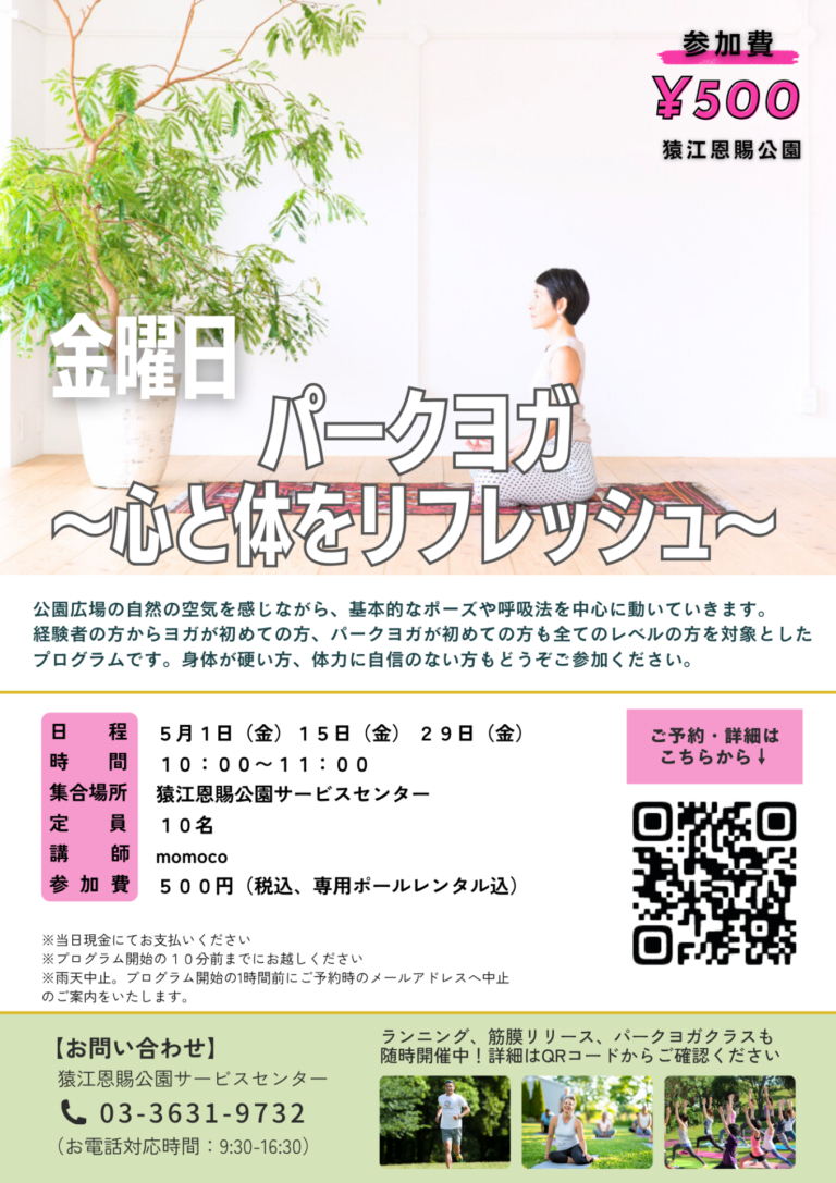 「パークヨガ ~心と体をリフレッシュ~(猿江恩賜公園)」開催のお知らせ