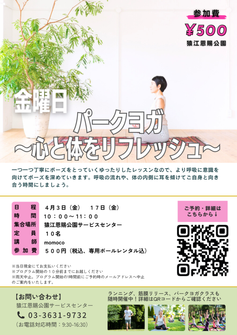 「パークヨガ ~心と体をリフレッシュ~(猿江恩賜公園)」開催のお知らせ