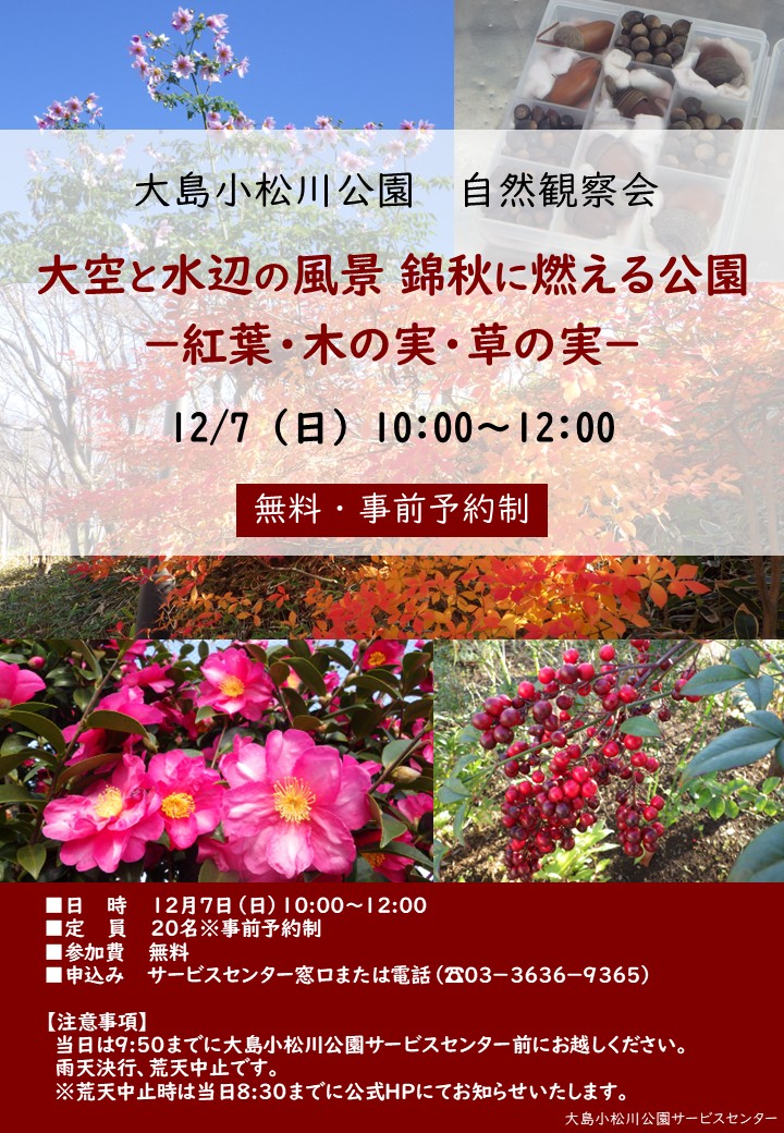 2025年12月7日に大島小松川公園にて自然観察会を開催します!