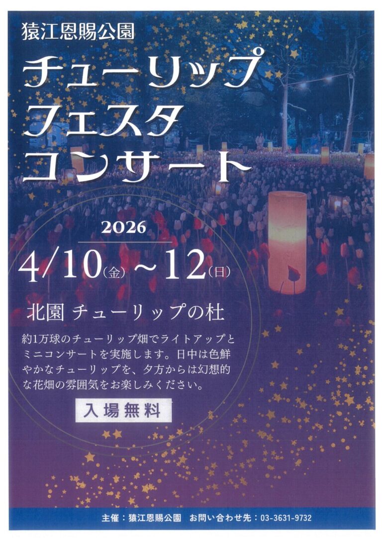 【猿江恩賜公園】チューリップフェスタコンサートのお知らせ