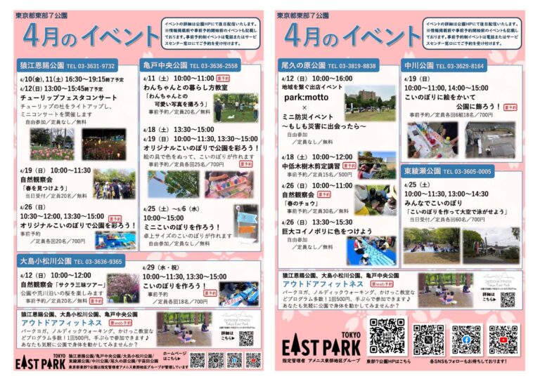 いつも東部7公園をご利用いただきありがとうございます。