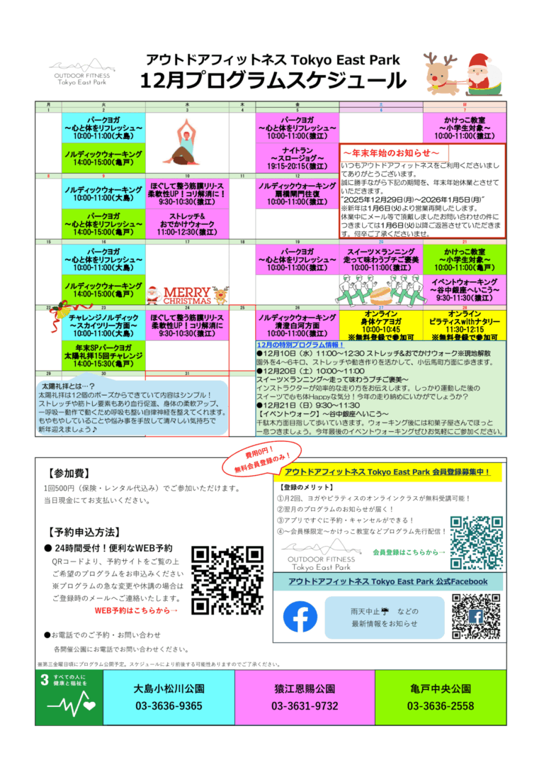 12月のアウトドアフィットネスカレンダーのご確認は「アウトドアフィットネスEast Park」のHPよりご確認ください!