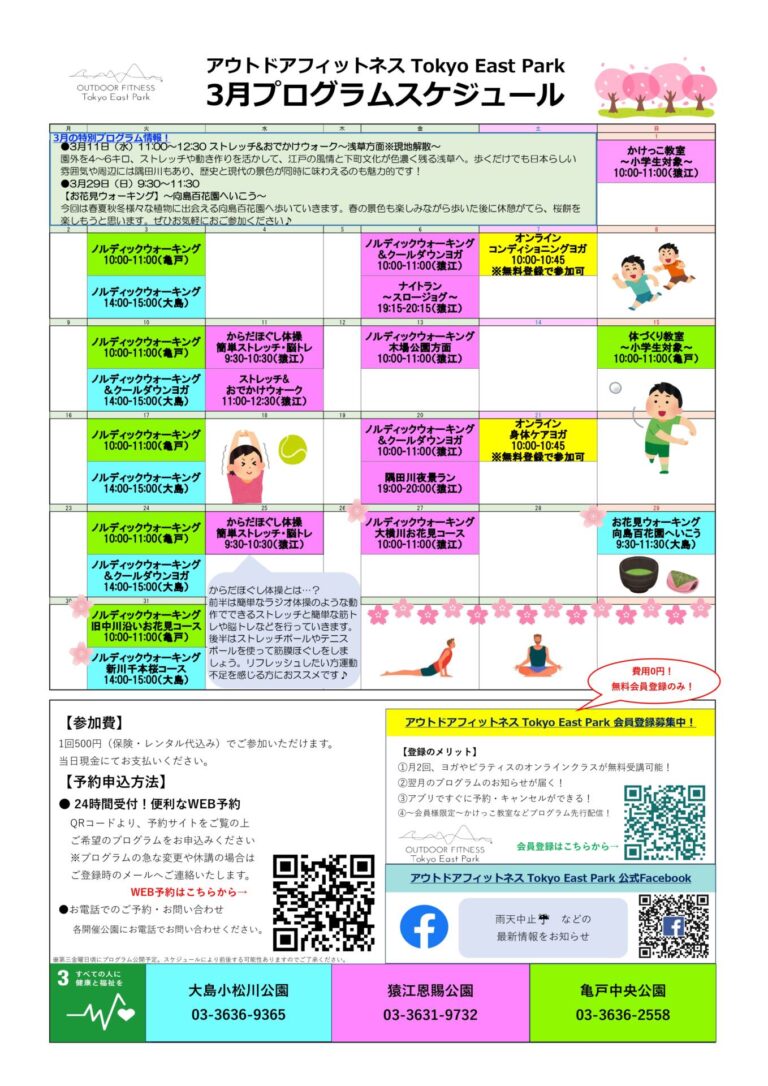 3月アウトドアフィットネスプログラムのご案内【アウトドアフィットネスTOKYO EAST PARK】