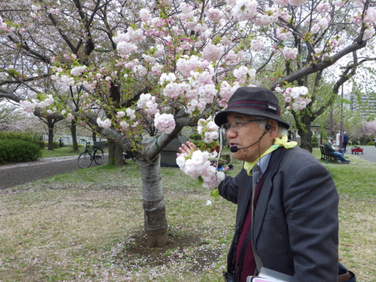 森林インストラクターの先生を招いて、園内の桜を解説して頂きます。