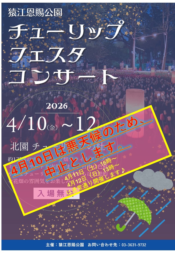 【中止のお知らせ】4/10(金)チューリップフェスタコンサート