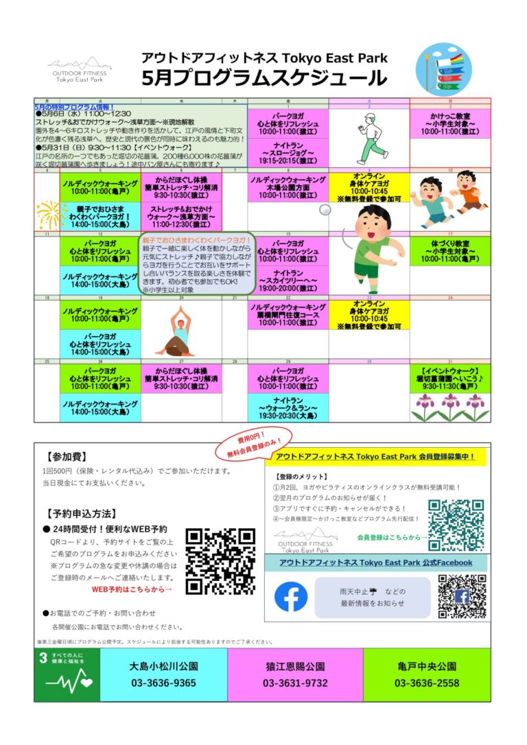 5月アウトドアフィットネスプログラムのご案内【アウトドアフィットネスTOKYO EAST PARK】