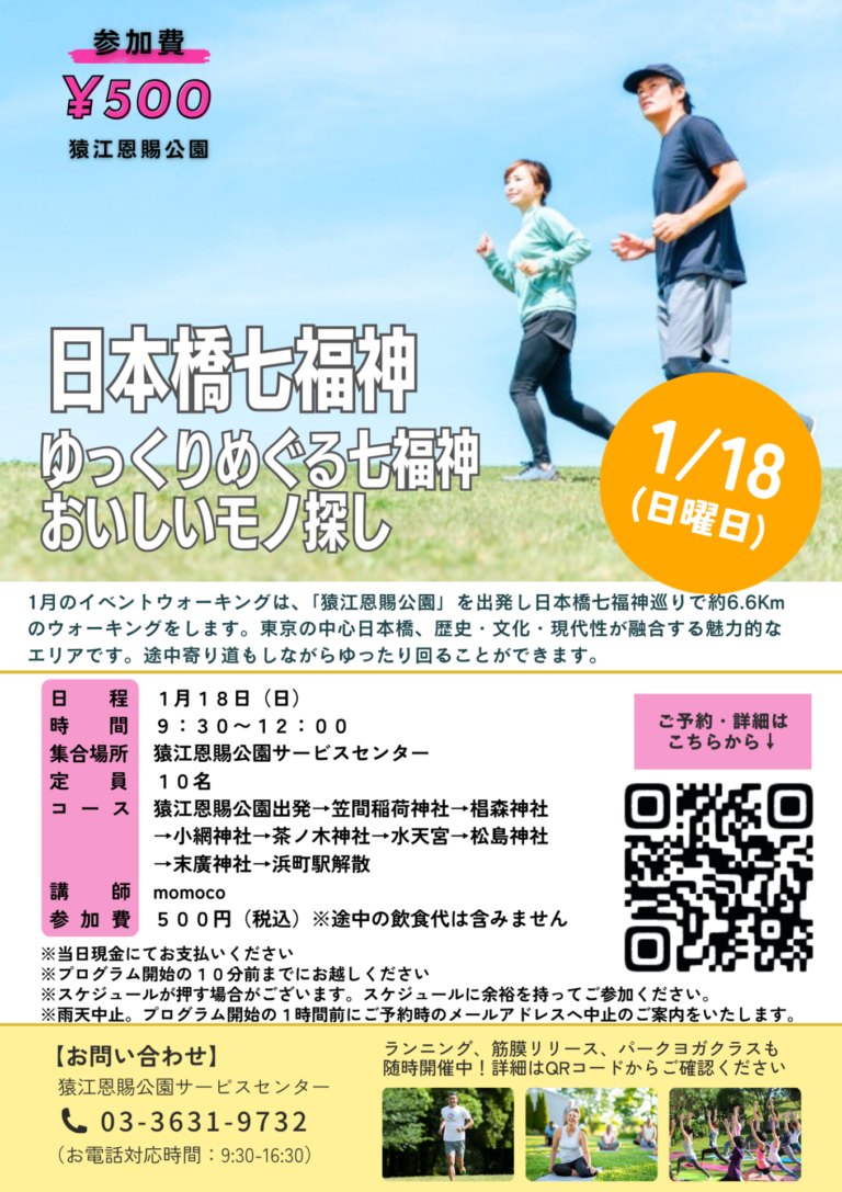「イベントウォーキング~ゆったり日本橋七福神※現地解散~(猿江恩賜公園)」開催のお知らせ