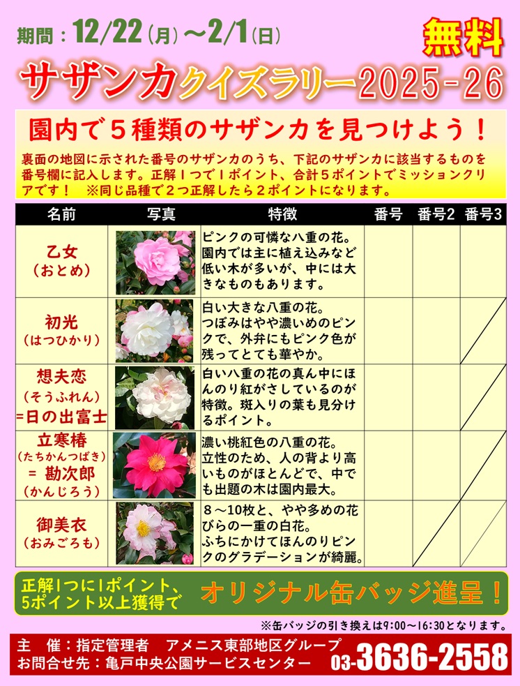 【亀戸中央公園】サザンカクイズラリー2025-26を開催します!