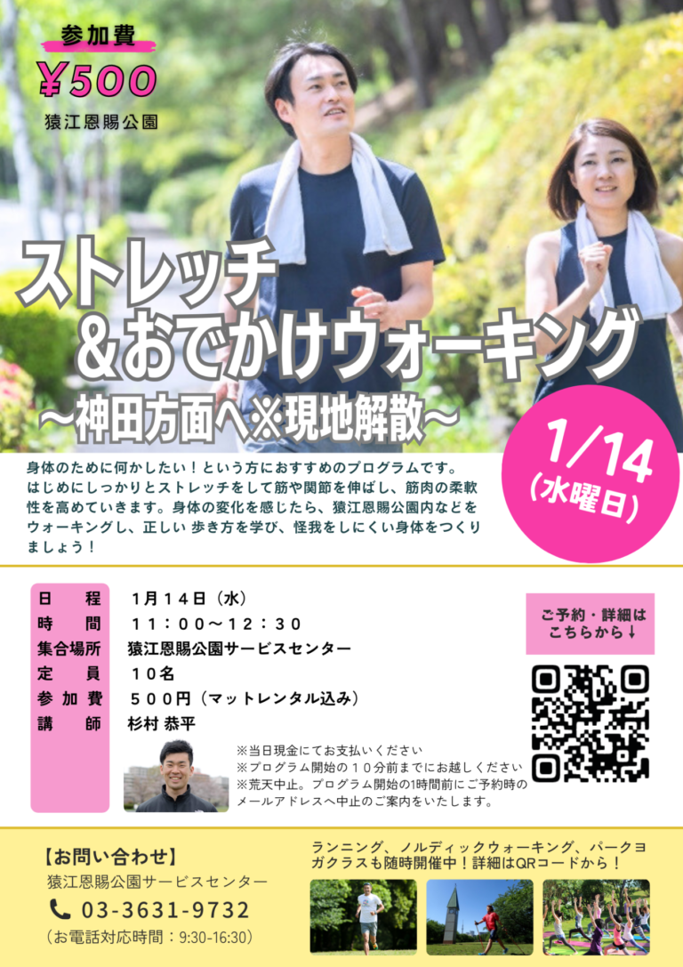 「ストレッチ&おでかけウォーク~神田方面※現地解散~(猿江恩賜公園)」開催のお知らせ